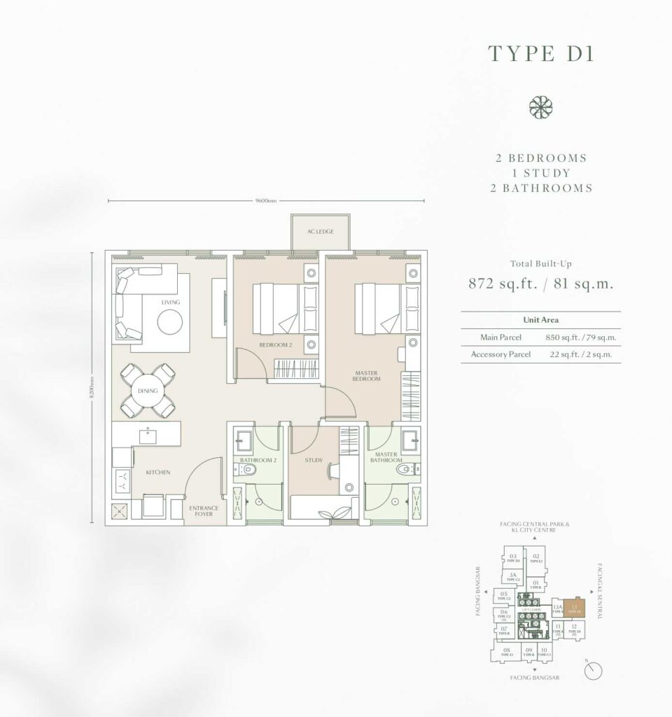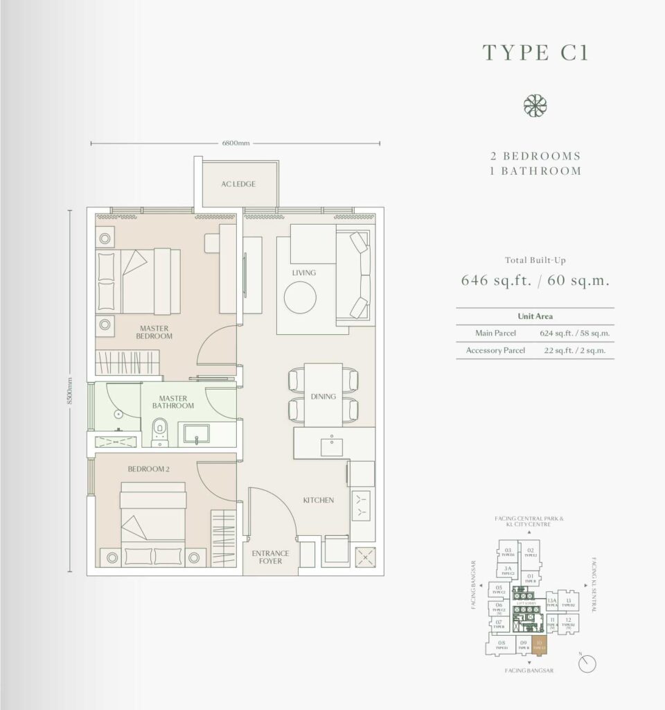 Enjoy a lifestyle of balance and elevation with facilities like Sky Lounge (Level 61) with iconic panoramic KL skyline views, a stunning Infinity Pool overlooking the city, a peaceful Hammock Garden, a vibrant Games Room, a fully equipped Sky Gym, a modern Co-working Space, walking distance to a 5-Acre Central Park with jogging tracks, landscaped gardens, and family-friendly green spaces.